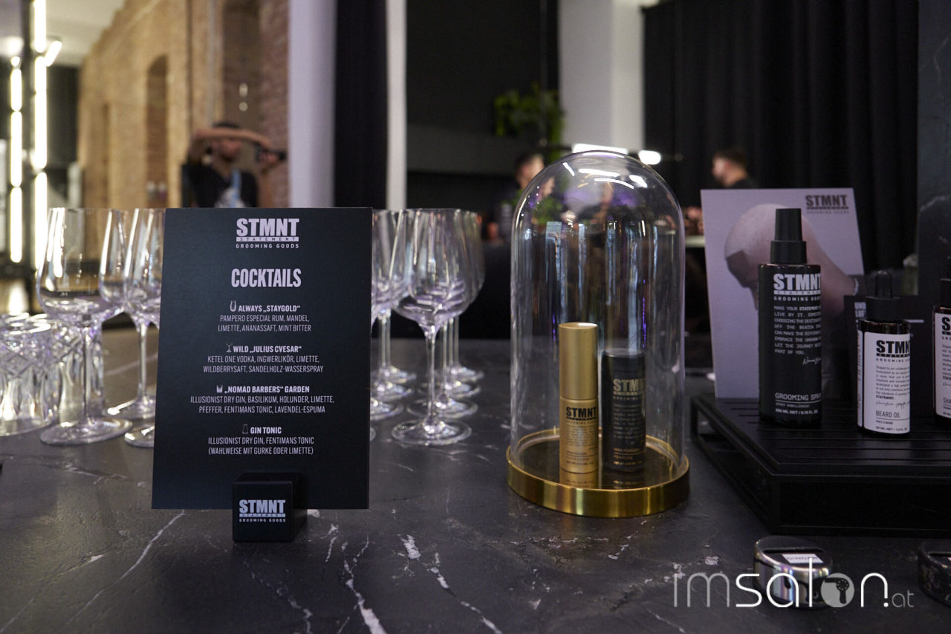 Dass es keine, wie eigentlich vermutet, Men-Look-Präsentation gab, schien hier niemanden wirklich zu stören, nutzten die ca. 50 Gäste den Abend zum Netzwerken in Sachen modernens Babering. Denn das ist es, was hinter dem Erfolgsprojekt STMNT steht: Modernes Barberhandwerk, das die Standards des Groomings neu schreiben möchte. Es geht um Lifestyle mit mutigen und authentischen Statements und einer starken Community aus Machern und Vorreitern. Seit einem Jahr erobert STMNT den heimischen Herrensalon- und Barbermarkt, ca. 700 Salons arbeiten bereits mit den Grooming Produkten.