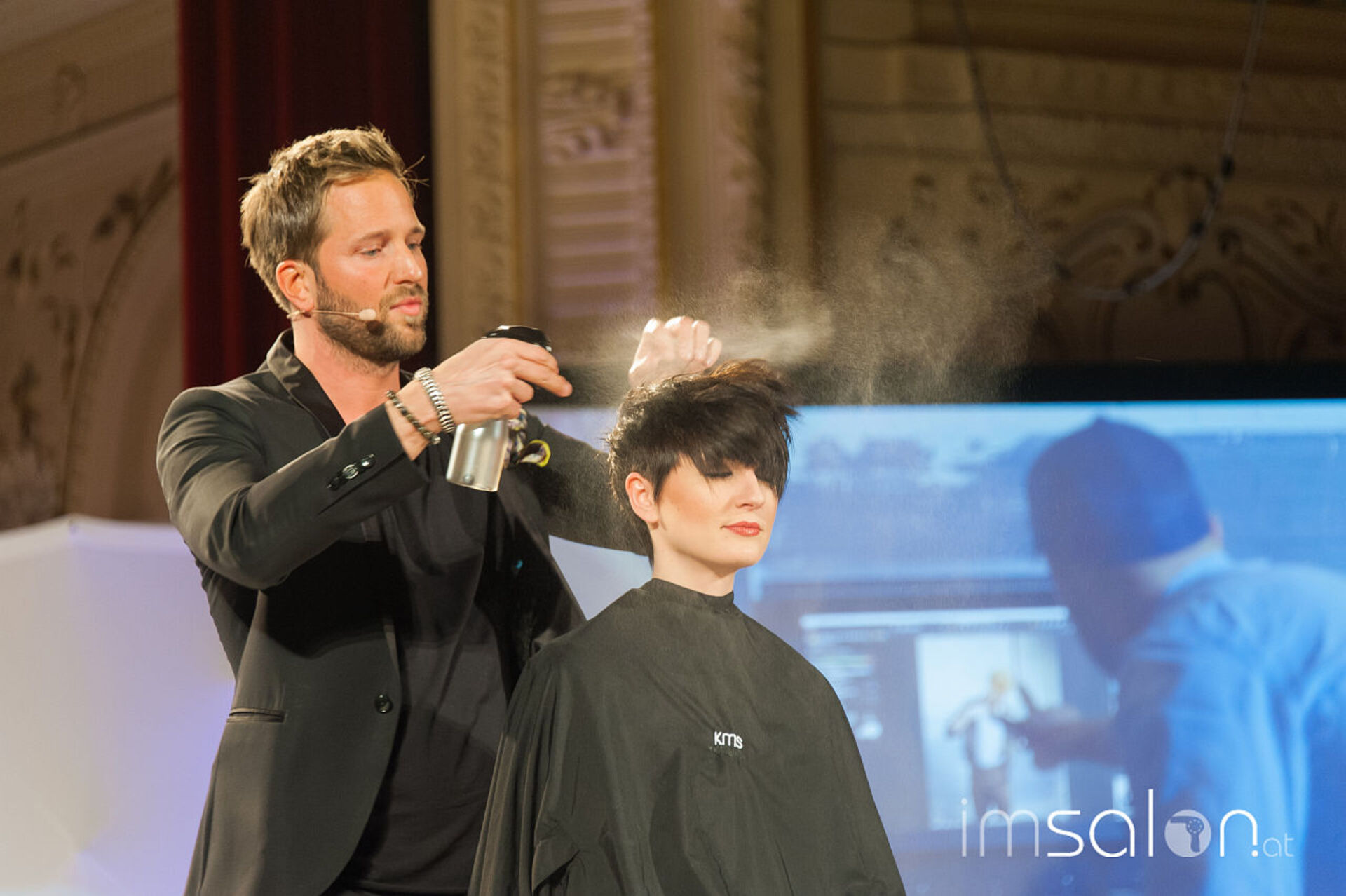 Simon Auer und seine deutschen Kollegen Robert Mrosek und Oliver Müller schneiden, stylen und mixen sich durch die neue Produkt-Palette von KMS bei der Hair is your Life 2017 im Palais Kaufmännischer Verein. Was entstehen sind schöne Looks; frisch, identisch, cosmopolitisch.