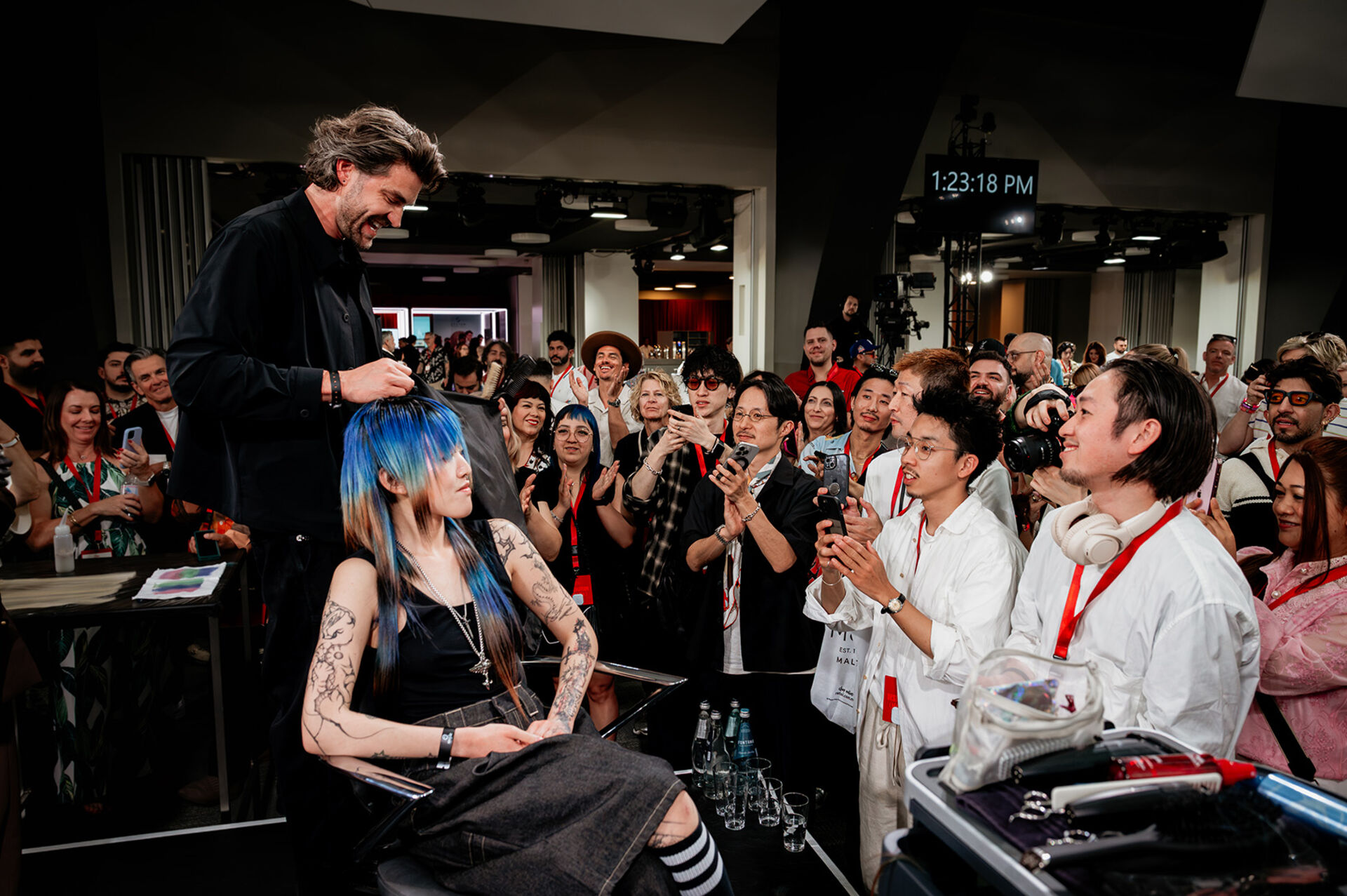 In jedem Land gibt es politische oder kulturelle Herausforderungen, im einen mehr, im anderen weniger. Im Austausch erfährt man von einer Stylistin aus der Ukraine, wie wichtig den Menschen in allem Leid, die eine Stunde für sich selbst beim Friseur ist. Ein Friseur aus den USA betont gleich, dass er nichts kann für die Politik und hofft, dass man ihn noch mag, hier in Europa. Eine Friseurin aus Großbritannien erklärt, wie die Friseur-Streiks vor Ort die Szene geeint haben. Ein Hairstylist aus Taiwan freut sich über den kreativen Austausch und bedauert es, so wenig an echtem Blond zu arbeiten.