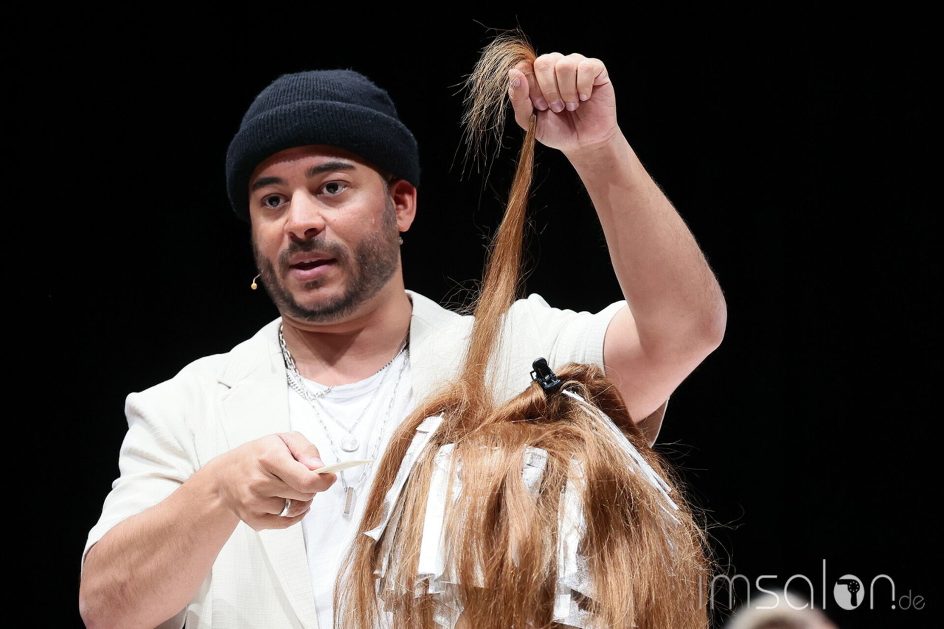 Interessante Frage, auf die John Breitenbach und Emir Kuljici Antworten lieferten. Balayage, Bowlage, Bleechwash - im Workshop mit den beiden Colorspezialisten an Trainingsmedien wurde es technisch.
