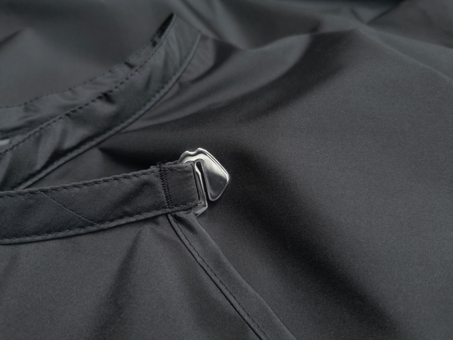 FR: Dieser Haken ist deutlich größer und schwerer als der bisherige Haken. Häufig verschleißen Haken rasch oder greifen nicht richtig. Dafür müssen die Haken perfekt entgratet sein, um tausende Male in den Saum zu greifen, ohne den Umhang zu beschädigen. Das ist eine große technische Innovation.